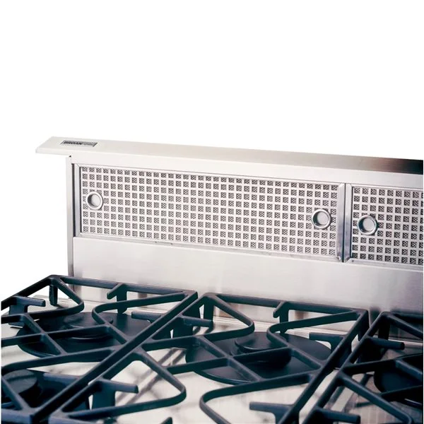 Conçu spécifiquement pour la plupart des surfaces de cuisson conventionnelles et de style commercial, ce modèle offre une performance élevée ainsi qu’un style exceptionnel. La construction en acier inoxydable de toutes les surfaces exposées assure un fini durable et une allure des plus remarquables.Hotte escamotable à tirage par le bas, s’élève à l’arrière de la surface de cuisson et se rétracte après utilisation, offrant un aspect épuré à votre cuisineCheminée d’admission pouvant atteindre une hauteur jusqu’à 9 1/2 pouces lorsqu’elle est activée, convenant parfaitement aux grosses batteries de cuisinePuissance maximale du ventilateur de 600 pi³/min pour éliminer rapidement la fumée et les odeurs de cuisineLes modèles RMDD3004EX, RMDD3604EX et RMDD4804EX vous offrent le choix de ventilateurs externes de 660 à 1620 pi³/min ou de ventilateurs internes de 320 à 1540 pi³/min (ventilateur requis et vendu séparément)Commande de vitesse rotative facile à utiliserFiltres en acier inoxydable brossé de style professionnel faciles à enlever et allant au lave-vaisselleConcept unique permettant le raccordement au ventilateur interne à partir de la gauche, de la droite ou du bas (de gauche à droite)Détecteur HeatSentry règle automatiquement la ventilation à vitesse maximale lorsqu’une chaleur excessive est détectéeTélécommande en option activant la ventilation à distance (RMDDRBK vendue séparément)