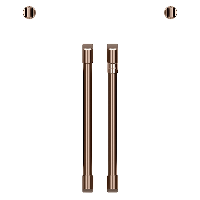 Harmonisez votre four mural à porte française au décor de votre cuisine. GE Café(MD) offre cet ensemble de poignées et boutons haut de gamme exclusivement conçu pour le modèle CTS90FP4MW2. Ce produit est couvert par une garantie limitée de (1) an. Nécessaire de quincaillerie personnalisée de 4 pièces pour un style sur mesure de four mural à deux portesConçu exclusivement pour les fours muraux à deux portes Café pour une performance de qualité professionnelleAvec sa couleur vive et terreuse, le fini cuivre brossé crée une allure artisanale véritableStructure tubulaire Café pour une bonne prise en main et un aspect professionnel