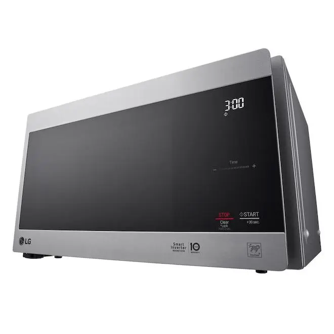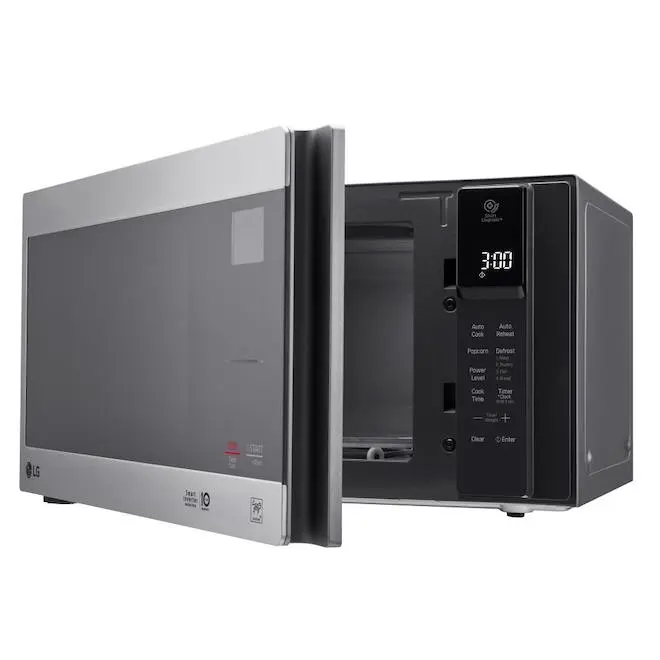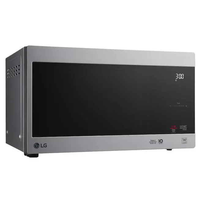 Préparez en un clin d’oeil des mets délicieux et des collations chaudes et régalez-vous grâce au micro-ondes de comptoir NeoChef de LG de 0,9 pi³! Son design compact est parfait pour les petits espaces, et son revêtement intérieur EasyClean prévient les taches et les accumulations de résidus. C’est un vrai charme de le nettoyer. De plus, la technologie Smart Inverter vous permet de contrôler sa puissance avec précision pour optimiser la cuisson. Les commandes en verre sur le clavier SmoothTouch ont non seulement belle apparence, mais elles sont aussi faciles à utiliser d’un simple effleurement. Et comme le reste du micro-ondes, la surface du clavier SmoothTouch se nettoie facilement à l’aide d’un linge. L’éclairage à DEL de ce modèle vous permet de surveiller la cuisson de votre plat. Son anneau stabilisateur hexagonal a 6 roulettes au lieu des 3 roulettes habituelles, ce qui contribue à garder les plats plus volumineux bien en place. Évitez les centres froids et les bords trop cuits grâce au chauffage précis et uniforme de l’inverseur intelligent de LGL’intérieur EasyClean de LG résiste aux taches et aux accumulations, de sorte que le nettoyage ne doit pas être une corvée, il suffit d’essuyer avec un chiffon humideL’anneau stabilisateur de forme unique empêche les objets placés sur le plateau tournant de basculerFaites confiance à votre micro-ondes LG avec une garantie de 10 ans sur le magnétronGardez facilement un oeil sur la vaisselle grâce à l’éclairage intérieur à DELCommandes à une touche qui facilite la cuisson et le réchauffement d’une variété d’aliments : d’une tasse de café aux pépites de pouletCommandes en verre élégantes SmoothTouch pour une utilisation et un nettoyage facilesDécongélation personnalisée : réglages spéciaux pour la viande, la volaille et le poisson et pour les portions d’une livre