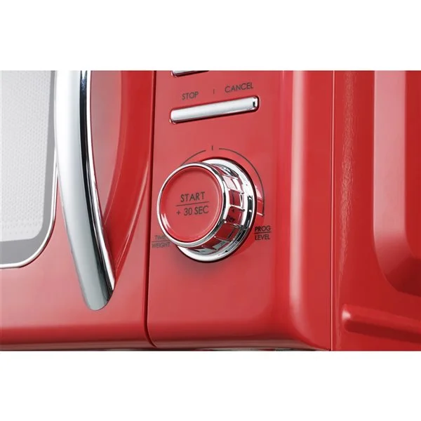 Le four à micro-ondes rétro Galanz offre un style nostalgique unique avec sa finition brillante et ses accents en métal chromé, ajoutant du style tout en restant fonctionnel dans votre cuisine moderne. C’est un ajout amusant et élégant à toute cuisine, toute salle de jeux, tout bureau ou tout dortoir. Ce four à micro-ondes rend la cuisson et le réchauffage de repas ou de boissons simples, rapides et pratiques. Avec des niveaux de puissance variables, des programmes de décongélation en fonction du poids et du temps et d’autres fonctions, ce four à micro-ondes offre une variété de choix de menus pour compléter vos tâches de cuisson.Design rétro nostalgique unique avec des accents chromésFournis 700 watts de puissance avec 10 niveaux de puissance variablesFonctions de cuisson automatique et de réchauffage automatique