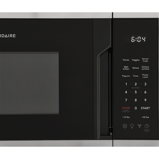 Ce four à micro-ondes avec hotte intégrée Frigidaire de 1,8 pi³ avec poignée dissimulée facilite l’heure des repas grâce à la technologie de cuisson par détection qui détecte automatiquement les aliments et ajuste les niveaux de puissance et les temps de cuisson pour vous donner des résultats savoureux. De plus, les options de cuisson préréglées pratiques et les boutons de démarrage rapide vous permettent de gagner du temps et de préparer de délicieux repas sans effort supplémentaire. La préparation des repas et la cuisson sont simplifiées par l’éclairage DEL qui offre une vue claire et lumineuse de votre surface de cuisson. Les capteurs de micro-ondes détectent et ajustent automatiquement les niveaux de puissance et les temps de cuisson pour une variété d’articles, offrant des résultats savoureux à chaque foisDes repas sur la table en quelques minutes grâce à six options de démarrage rapide différentes qui vous permettent de commencer à cuisiner plus rapidementÉclairage intérieur et extérieur par DEL pour une visibilité maximaleObtenez un look amélioré avec notre porte élégante à poignée intégrée