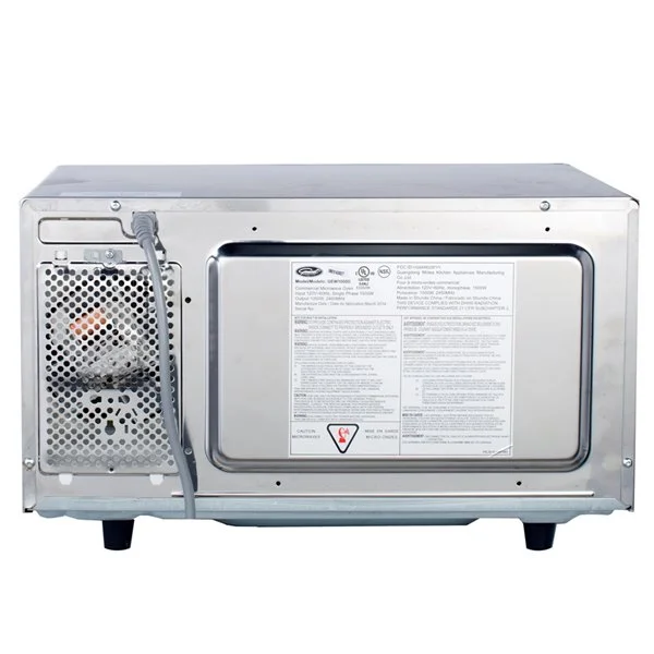 Ce four à micro-ondes performant et regorgeant de fonctions intéressantes plaira aux consommateurs soucieux de la valeur qualité-prix. D’une conception misant sur la convivialité, la performance et l’abordabilité, ce four à micro-ondes de série GEW1000D constitue un achat judicieux. Il a été fabriqué pour résister à une utilisation allant de légère à moyenne, notamment dans les cafés, les pizzérias, les casse-croutes, les lieux de libre-service, les cafétérias, les salons pour étudiants et plus encore. Il permet de cuire et de réchauffer des aliments en utilisant 1 000 Watts ou moins.Intérieur et extérieur en acier inoxydableAlarme sonore signalant la fin du cycle de la minuterieComprends une poignée en métal robuste et un système de verrouillage durableLoquets de porte flexibles et renforcés pour éviter les brisLumière intérieure