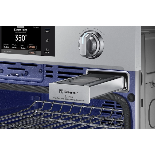 La cuisson à la vapeur fournit de l’humidité à des moments précis pour une cuisson croustillante, dorée à l’extérieur et tendre à l’intérieur.FlexDuo permet de cuire simultanément deux plats différents à des températures différentes. La capacité de 5,1 pieds cubes peut accueillir un rôti, plusieurs plats en cocotte ou plusieurs grilles de biscuits.La fonction de double convection fait circuler l’air plus rapidement pour des résultats de cuisson plus uniformes et plus efficaces. Profitez de la cuisine gastronomique, un guide de recettes préprogrammé pour vous aider à cuisiner avec des résultats toujours bons. Surveillez et contrôlez à distance le four à partir de votre smartphone grâce à la connectivité Wi-Fi. La sonde de température compatible Wi-Fi vous permet de vérifier la température du rôti à partir de votre téléphone. Les lampes à DEL distinctives combinent halogène et DEL pour un intérieur plus lumineux, éliminant le besoin d’ouvrir la porte pour vérifier les progrès afin que vous puissiez maintenir une température constante. Garantie limitée d’un an. Vous pouvez utiliser les zones de cuisson supérieure et inférieure séparément, pour faire cuire différents plats simultanément avec des températures et des durées différentes, ou les utiliser ensemble.La connectivité WI-F vous apporte la tranquillité d’esprit en vous permettant de surveiller et de contrôler le four à distance à l’aide d’une application smartphone, tout en recevant des alertes en temps réel sur votre cuissonLa fonction de cuisson à la vapeur permet de conserver l’humidité et les nutriments essentiels tout en offrant un extérieur croustillant et bruni et un intérieur tendreLes gros boutons métalliques avec indicateur lumineux vous permettent de savoir rapidement quels brûleurs sont allumés et de régler les commandes du four ; leur conception large et robuste les rend également faciles à prendre en main et assure une meilleure utilisationLa fonction de rôtissage à la vapeur garantit les meilleurs résultats lors du rôtissage, sans que les aliments ne se dessèchent. Les viandes rôties, comme la volaille, le porc et le b?uf, sont toujours délicieusement brunes à l’extérieur, mais tendrement fondantes et juteuses à l’intérieurUn système de nettoyage hybride qui permet de gagner du temps et d’éviter les tracas, nettoie le four sans odeur désagréable ni frottement, combine chaleur élevée et vapeur pour pyrolyser les aliments et dissoudre la graisse, afin de pouvoir l’essuyer rapidementLe système à double convection permet de cuire les aliments de manière uniforme, ce qui est idéal pour la cuisson au four et au gril. Deux ventilateurs distribuent la chaleur tout autour du four, ce qui permet de cuire les plats à fond et de profiter de résultats savoureux