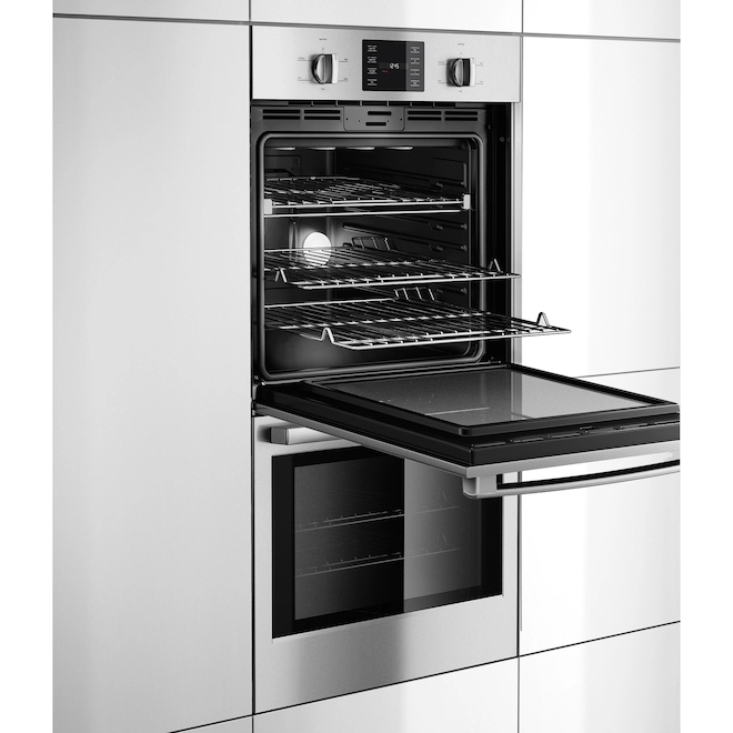 Le four est indispensable de cuisine et celui-ci l’est encore plus grâce à sa fonction d’autonettoyage. Épargnez cette tâche pour de bon et concentrez-vous plutôt à cuisiner des mets plus délicieux les uns que les autres. Simplement appuyez sur Démarrer (Start) et le four chauffera – indépendamment du degré de salissure (à 480°C max) et éliminera les graisses ou résidus alimentaires en les brûlant. Ce four mural Bosch possède des boutons en métal robustes pour un aspect et une sensation de qualité supérieure. Garantie 1 an. Le four électrique mural double Bosch série 500 vous permet de cuire plusieurs plats en même temps à des températures différentesDeux grilles de four dans chaque four avec 6 positions possibles vous permettent de vous adapter à vos besoins de cuissonLes modes de cuisson thermique comprennent la cuisson au four, le gril variable (haut et bas), le rôtissage, le réchauffement et le sabbatLe cycle d’autonettoyage EcoClean(MC) de 2 heures vous permet de passer moins de temps à nettoyer et plus de temps à cuisiner, tout en économisant de l’énergieLa fenêtre extralarge et la lumière du four vous permettent de voir et de surveiller facilement vos aliments, sans avoir à ouvrir la porteLes boutons en métal robuste donnent un aspect et un fini de qualité à votre cuisineCompatible avec les découpes de la plupart des marques de fours muraux, il s’installe au même niveau que votre armoireCertifié Star-K pour une utilisation pendant le sabbat juif et d’autres fêtes religieuses, afin que vous puissiez organiser un délicieux dîner en familleL’arrêt automatique empêche toute utilisation involontaire ou non supervisée