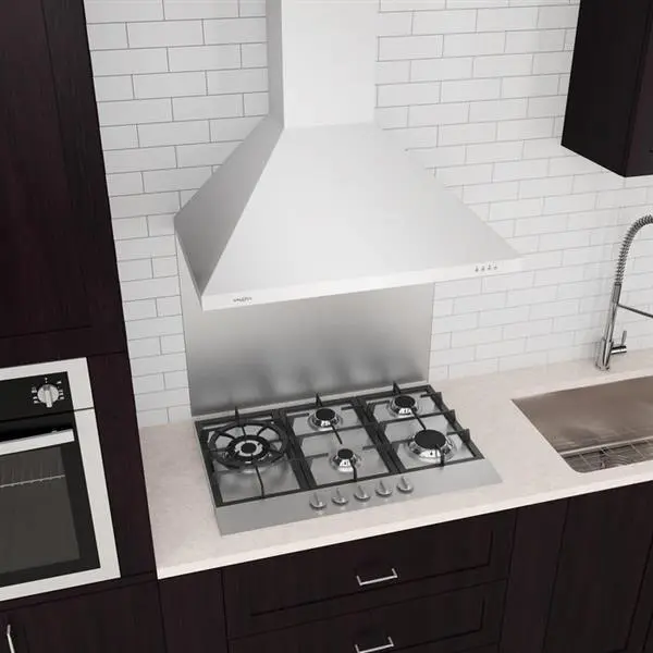 Fabriquée en acier inoxydable 430 de qualité supérieure, cette hotte Ancona en forme de pyramide classique offre un style raffiné et un rendement supérieur, le tout à un prix abordable. Cette hotte WPPW430 est munie de commandes électroniques à trois vitesses faciles à utiliser, de lumières DEL écologiques et de filtres faciles à nettoyer. Cette hotte saura rehausser toute cuisine!Hotte pyramidale classique monté au murCommandes électroniques 3 vitesses basse vitesse 50 dBAFiltres à mailles d’aluminium, lavable au lave-vaisselleAcier inoxydable de qualité commerciale 4302 lumières DEL de 3 W puissantes, brillantes et écoénergétiques, mises au point par Ancona et dont la durée de vie est 10 fois supérieure à celle des lumières traditionnellesCertifié CETLusVentilation par le haut : rond et de 6 po.120V / 60 HzCertification cETLus