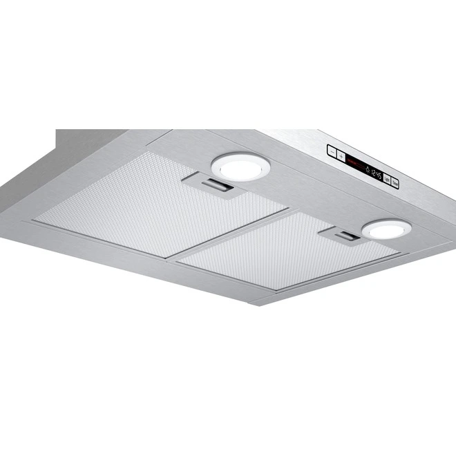 | Contenu de l'emballage | Hotte aspirante avec ventilateur, clapet anti-retour, Lampe – déjà installée, Filtre à graisse métallique, Conduit de fumée, Gabarit de perçage, 1x équerre pour le conduit de fumée, 6x vis (5×45 mm), 8x vis (4,2×8 mm), 6x creux chevilles (8×40 mm), adaptateur Torx (10 et 20) |