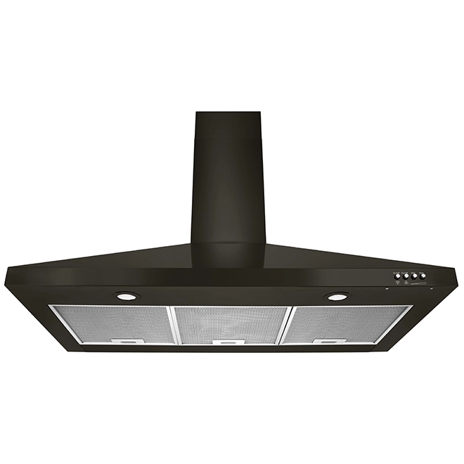 Ajoutez une touche de modernité à votre espace de cuisine grâce à cette hotte murale Whirlpool(MC) de type cheminée. Sa finition noire en acier inoxydable offre une résistance supérieure aux traces de doigts pour un nettoyage simple et rapide. D’une largeur de 36″, elle est dotée d’un moteur à trois vitesses qui permet aux trois ventilateurs de générer une puissance d’aspiration de 400 pi³/min, tout en n’émettant que de 44 à 66 dBA, selon la vitesse sélectionnée. Cette hotte est pourvue d’un système d’éclairage à DEL pour une visibilité optimale et de filtres à graisse lavables au lave-vaisselle. De plus, vous pouvez choisir d’évacuer l’air aspiré à l’extérieur ou de la recycler vers l’intérieur; des filtres au charbon seront alors nécessaires (non compris). Ce produit est couvert par une garantie limitée d’un (1) an sur les pièces et la main-d’oeuvre. L’éclairage DEL brillant et durable permet de voir facilement ce que vous préparezLes filtres lavables au lave-vaisselle retiennent les graisses et les odeurs indésirables et se lavent facilement pour être réutilisésLes 3 vitesses du ventilateur fournissent la bonne quantité de ventilation pour chaque repas que vous préparezÉvacuez les vapeurs et les odeurs à l’extérieur ou filtrez-les et faites recirculer l’air, selon la configuration de votre cuisineLa cuisine reste silencieuse, même lorsque l’évacuation se fait à la vitesse maximale : à cette vitesse, le niveau sonore atteint 66 dBA (5,5 sones)