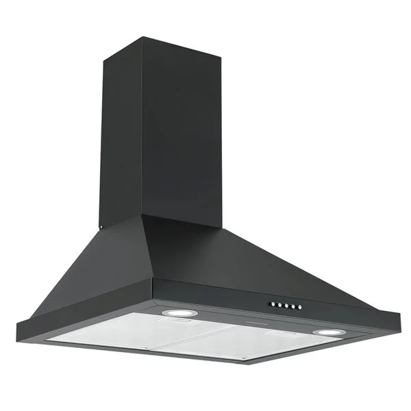 Hotte De Cuisine Pyramidale Hybride Noir Mat à Montage Mural 24 Po 280 PCM Ancona Avec Filtre Au Charbon