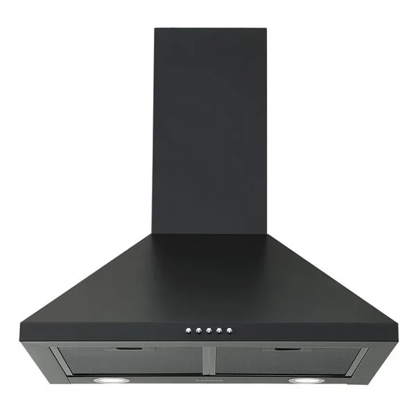Hotte De Cuisine Pyramidale Hybride Noir Mat à Montage Mural 24 Po 440 PCM Ancona Avec Filtre Au Charbon