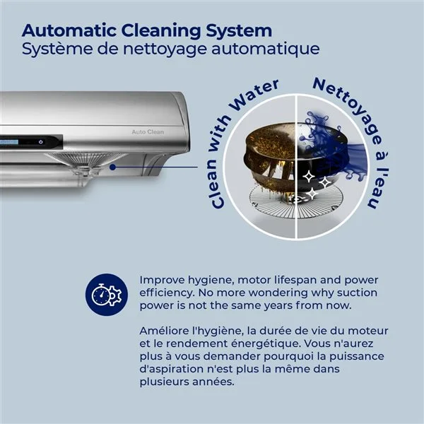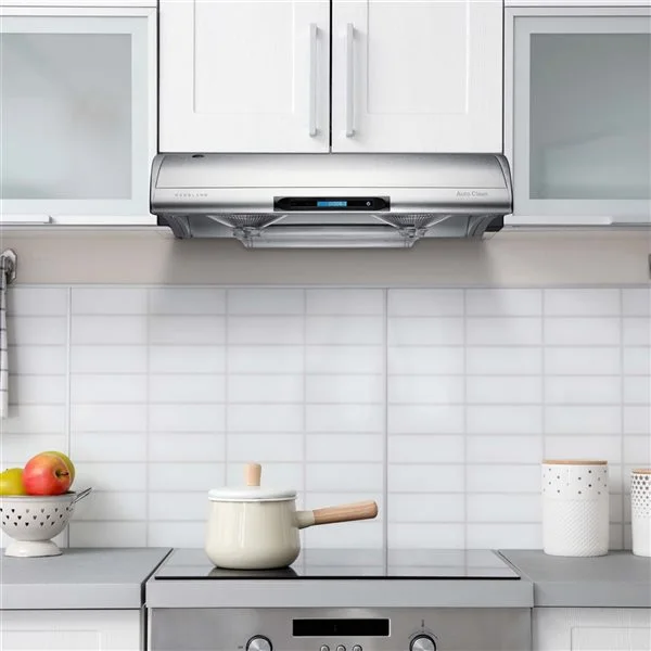 Cette hotte de cuisine sous-armoire apportera une performance et une fonctionnalité inégalées à votre cuisine. Le profil mince le rend facile à installer et sa finition en acier inoxydable complète n’importe quel style de cuisine, du style traditionnel au style moderne. Le système de ventilation garantit que même les odeurs et les vapeurs les plus puissantes sont évacuées rapidement.Élimine la chaleur et la fumée, parfait pour faire bouillir, cuire à la vapeur, pocher et braiserSystème autonettoyant à l’eau pour un entretien facile et une durabilité accrueVentilation à 3 voies pour une installation facileLumière halogène offre un niveau d’éclairement idéalPanneau de commande tactile avec horloge pour une utilisation simpleLe collecteur de graisse et le collecteur d’huile retiennent la graisse avant qu’elle n’ait la chance de s’écouler6 réglages de vitesse pour une performance personnaliséeConvient aux conduits ronds de 6 po ou aux conduits rectangulaires de 3-1/4 po x 10 po.Garantie limitée de 2 ans et garantie à vie sur les moteurs