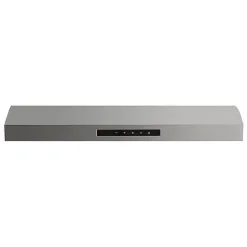 Dotée d’un fini moderne en acier inoxydable et de commandes électroniques à effleurement, cette hotte sous-armoire 30 pouces de Mistral offre 3 vitesses de ventilation avec un débit d’air de 350 PCM et comprend 2 lumières DEL vous permettant de bien voir lorsque vous utilisez la surface de cuisson. La hotte comprend deux filtres à chicane en acier inoxydable et possède un délai d’arrêt automatique. 350 PCM (volume d’air maximal)3 vitesses (1 à 4 sones)Commandes électroniques à effleurementÉclairage à DELFiltres à chicane en acier inoxydable de haute qualité inclusDélai d’arrêt automatiqueTransition de conduits rectangulaires de 25 x 10 et ronds de 7 pouces29 7/8 l. x 19 1/2 p. x 5 1/4 h. (pouces)