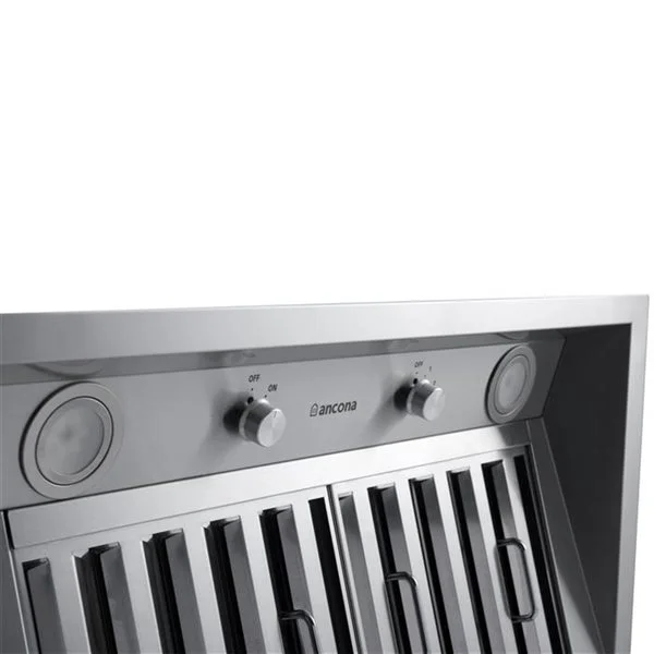 Conjuguant esthétique et fonctionnalité, cette superbe hotte de cuisine encastrable est munie d’un puissant moteur et de filtres à chicane inclinés, pour une cuisine propre et purifiée.Acier inoxydable 430 de haute qualitéMoteur de 600 pi3/min selon les tests indépendants et homologué cETLusCommandes rotatives à 4 vitesses, plus conviviales que les boutons-poussoirs2 ampoules à DEL de 1,5 WAmpoules à DEL puissantes, brillantes et écoénergétiques conçues par Ancona, affichant une durée de vie jusqu’à 10 fois plus longue que les ampoules ordinairesFiltres à chicane inclinés en acier inoxydable de haute qualité, permettant de capter encore plus de graisses et allant au lave-vaisselleÉvacuation vers le haut (évent circulaire de 6 po)Ventilation extérieure, seulement; ce modèle ne peut être converti en unité de recirculation intérieure