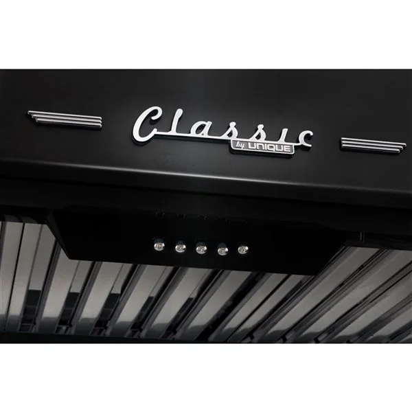 Hotte Sous Armoire De 24 po Et 500 pi³/min Noir Minuit Classic Retro Par Unique Avec Conduit D’évacuation Et Filtre En Charb