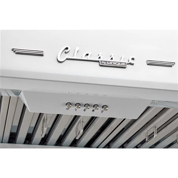 Hotte Sous Armoire De 30 po Et 700 pi³/min Blanc Guimauve Classic Retro De Unique Avec Conduit D’évacuation Et Filtre En Cha
