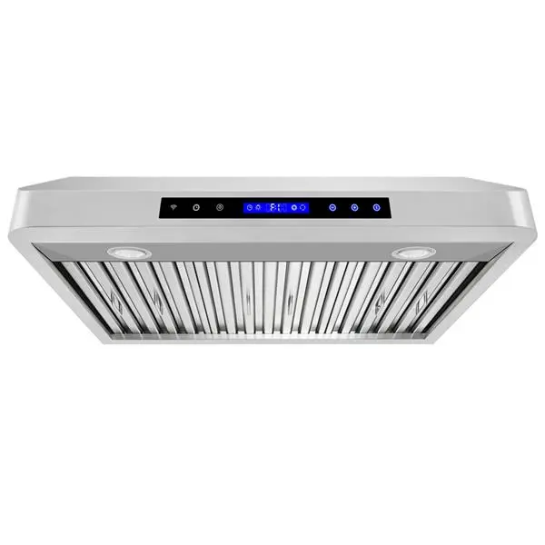 Rendez la ventilation de la cuisine facile et élégante avec cette hotte de cuisine sous-armoire Strada de Turin. La hotte de cuisine sous-armoire Strada de Turin (30 po est construite en acier inoxydable sans soudure. Elle est équipée de filtres à graisse en chicanes composés d’acier inoxydable de qualité professionnel pouvant être nettoyés au lave-vaisselle. Elle est munie de lumières DEL offrant une visibilité accrue et une consommation d’énergie réduite. L’unité ventilée verticalement offre une puissance de 900 PCM pour un niveau sonore de 6 sones au maximum de sa puissance, alliant efficacité et rendement pour plus de tranquillité. Elle possède un panneau de commandes électroniques à trois vitesses avec arrêt automatique et une télécommande pouvant fonctionner à plus de 20 pieds.900 pi³/minPanneau de commande électronique à trois vitesses avec arrêt automatique (programmable 1-15 min) et une télécommande. Deux lumières DEL de 2 watts.Filtres à chicane en acier inoxydable allant au lave-vaisselle. Réservoir d’huile facilitant l’entretien et améliorant l’efficacité en éliminant l’accumulation de dépôts à l’intérieur du moteur, le rendant plus silencieux et plus efficace à long terme.Conduit de 8 po. Ventilation par le haut vers l’extérieur uniquement (pas d’option de recirculation).Convient aux armoires de cuisine standardFabriqué en acier inoxydable de calibre 19 de haute qualité commerciale et non magnétique (1 mm d’épaisseur)Acier inoxydable brossé. Ventilateur double de type turbine avec moteur tout en métal et grille de protection en métal.Construction en acier inoxydable sans joints. Facile à nettoyer. Hauteur de l’unité: 10 po (254 mm)Pour cuisinière au gaz naturel ou propane, une plaque de cuisson électrique ou à induction.